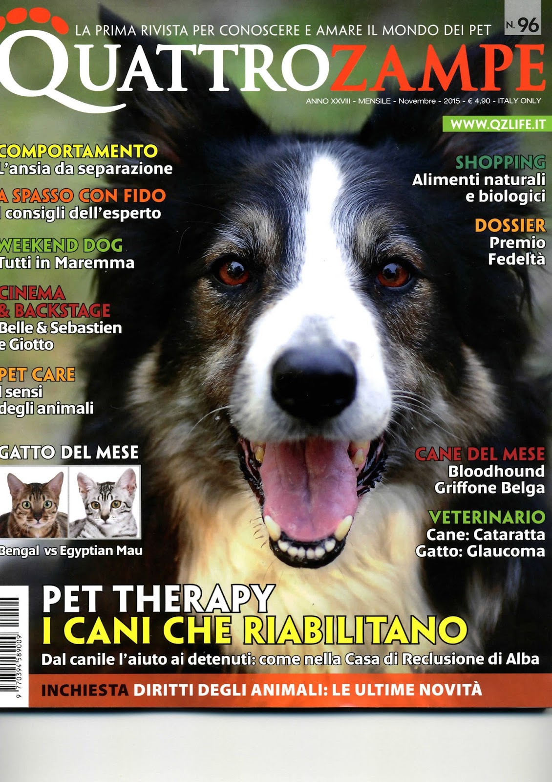 QUATTROZAMPE Novembre 2015: 8 pagine che parlano dell'Associazione Recuperamiamoli e del progetto realizzato presso la Casa di Reclusione di Alba denominato Laboratorio di Pet Therapy
